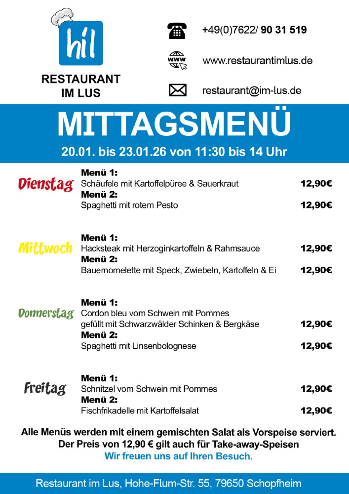 Als Mittagstisch bezeichnet man wechselnde Mittagsangebote (oft günstiger als à la carte). Viele Restaurants veröffentlichen Tagesgerichte oder Wochenkarten – häufig als PDF, Foto oder auf der Website. Schlemmermap bündelt solche Informationen, sobald ein Menü hinterlegt ist.